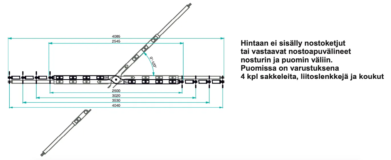 - Ylivoimaisesti kevein, säätyvä ja kokoontaittuva ristikkopuomi