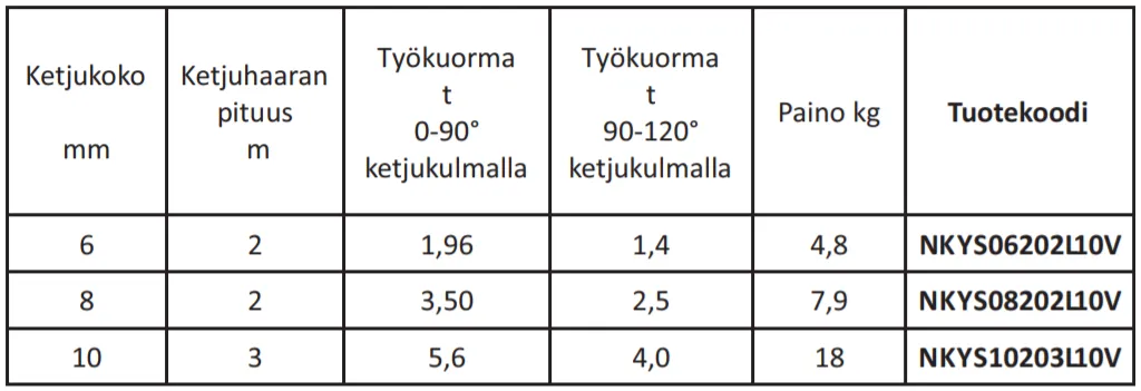 - 2-haarainen nostoketjuyhdistelmä työkalulaatikossa