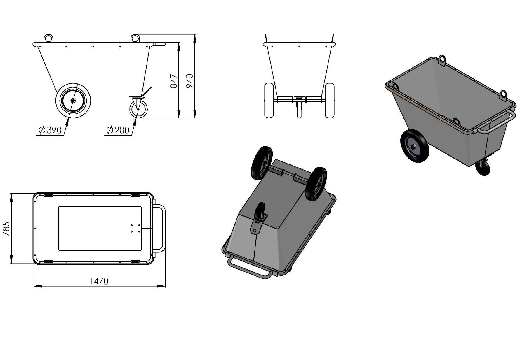 Roskakärry "Jassikka" WLL;800k 400L renkailla