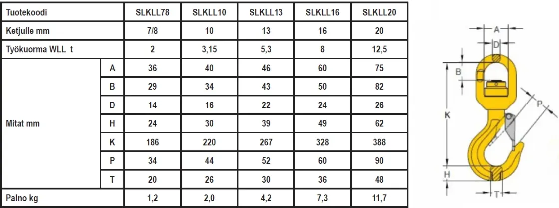 Salpakoukku kuulal.leikarilla on 8-luokkainen työkalu, joka on varustettu kuulalaakeroidulla leikarilla. Se on suunniteltu erityisesti 13 mm ketjuille ja sen työkuorma on 5,3 tonnia, mikä tekee siitä erinomaisen valinnan raskaiden kuormien käsittelyyn.