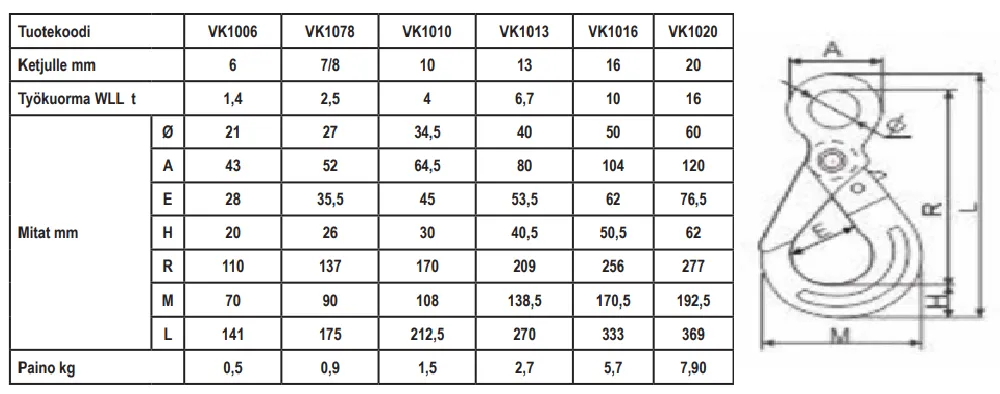 Varmuuskoukut 10lk silmällä