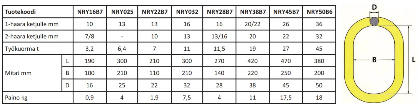 Ylisuuret nostorenkaat 1- ja 2-haaraisille